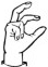 На ћирилици написано ДРИНКА ЕЛЕЗ састоји се из 10 слова [?]. Исписано ћириличном једноручном азбуком за глувонеме: